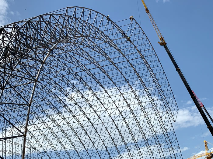 (2)网架加工前应对现场尺寸进行复测,确认无误后方可进行加工、安装;网架制作、运输、安装应遵守《空间网格结构技术规程》JGJ7-2010、《钢网架磐石螺栓球节点》JG/T 10-2009、《钢网架磐石螺栓球节点用高强度螺栓》 GB/T 16939-2016、《磐石钢结构磐石工程磐石施工规范》 GB50755-2012、《磐石钢结构磐石工程磐石施工质量验收标准》 GB50205-2020。